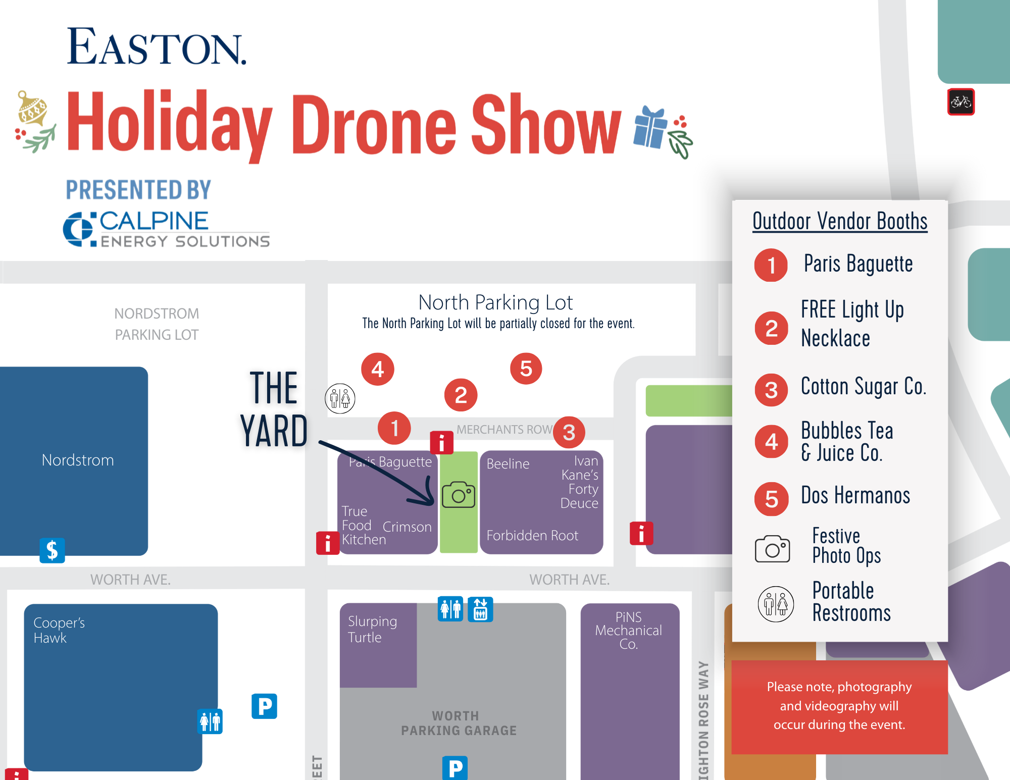 To enjoy the show, join us at The Yard, located near Crimson and Beeline! Merchants Row will be pedestrian-only for guests to view the drones and enjoy treats throughout the evening.