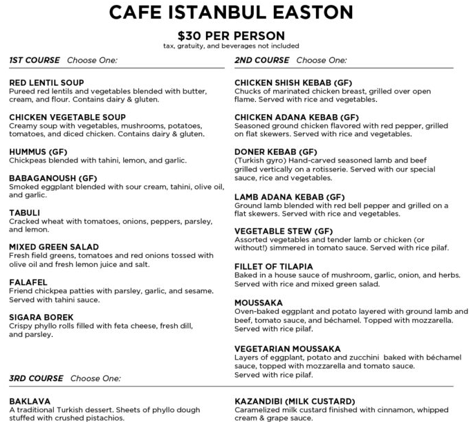 See which brands are participating and click each menu to see what’s offered.